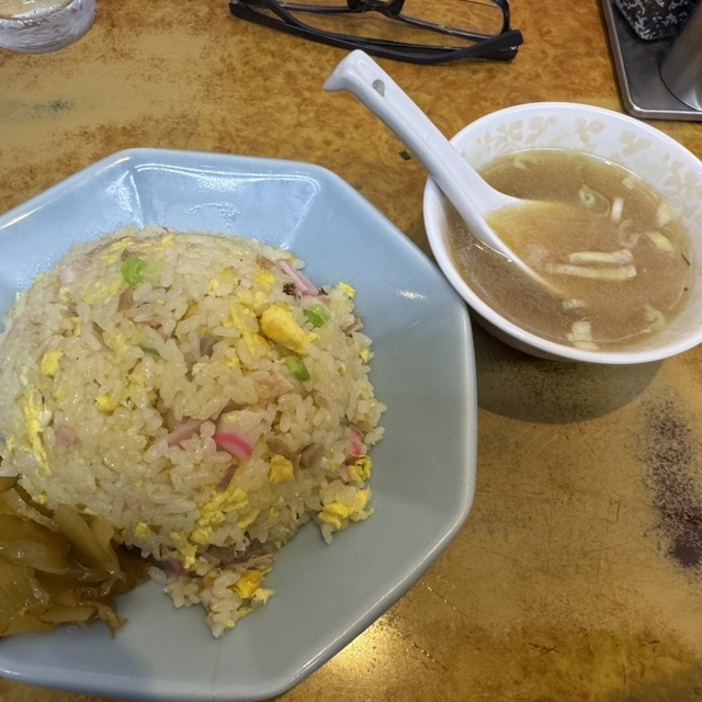 常連さんのおすすめは、ハム・グリーンピース・おおぶりのエビが入ったチャーハン。味付けに醤油は使わず、塩・コショウ・旨味調味料、そしてこだわりの煮酒が最大のポイントになっています。