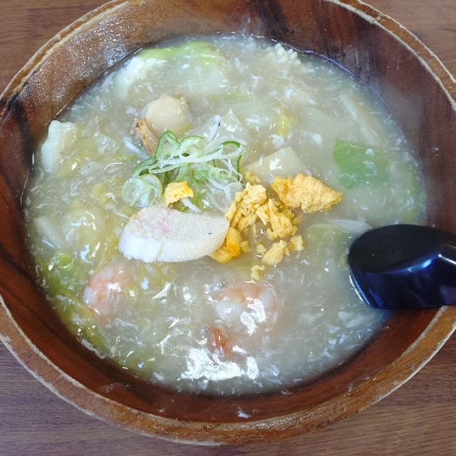 醤油スープのラーメンに熱々の野菜あんかけをたっぷりとのせた一杯。スープは、豚骨・煮干し・昆布からとったスープを醤油ダレと合わせたもの。麺は、横浜の製麺所に特注している細麺です。もやし・キャベツ・ほうれん草・玉ねぎ・にんじん・きくらげを炒め、ラーメンスープなどで味付け、とろみをつけた餡がたっぷりとかけられています。