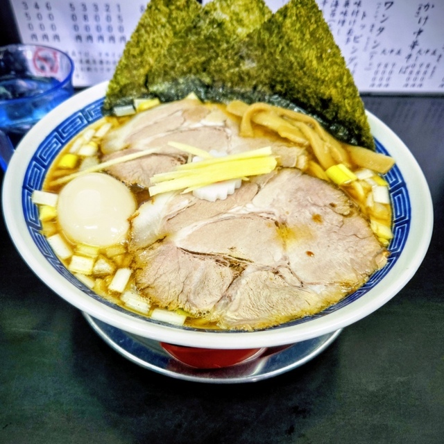 店主の地元、外房の中華そばをイメージしたというさば節が強い中華そば。スープの隠し味には、パイナップルを使用。麺は、浅草開化楼に特注した製麺を使用しています。とろっとろのワンタンやチャーシュー、味のアクセントとなる針生姜などがトッピングされています。魚介系のスープと生姜の味が相性抜群です。