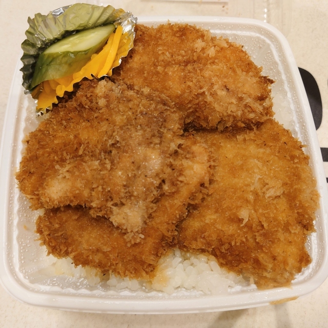卵でとじられたカツ丼ではなく、ご飯の上に薄いカツが4枚のったシンプルなカツ丼。厚さ7㎜にカットされた脂少なめの豚肉に小麦粉・溶き卵を絡ませ、細かめのパン粉をまぶし、ラードでカラッと揚げたとんかつはサクサク!本醸造の醤油をベースに野菜のスープと上白糖を合わせたした少し甘めの秘伝の醤油だれにカツをどっぷりとくぐらせてたれごとご飯の上に盛り付けています。