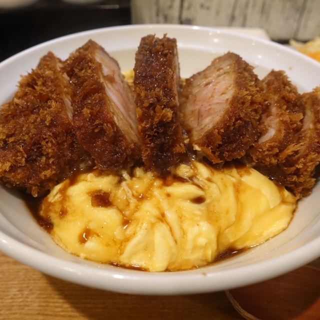 ご飯の上に焼いた玉子を敷いて2種類のとんかつをのせ、さっぱりとした味わいのオリジナルの特製だれをかけて仕上げた丼。とんかつには、肉がやわらかく脂に甘みがある千葉県産のブランド豚「林SPF」のリブロースと特上ヒレを使用。パン粉には、粗めの食パンを使っており、ザクザクとした食感を楽しめます。