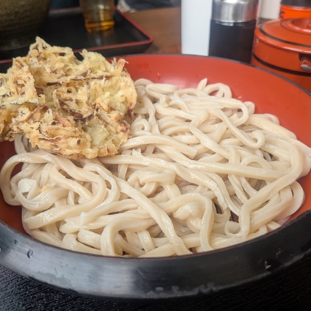 - つけ麺うどん L(肉汁・天付)750円 ※うどんの量は約480g