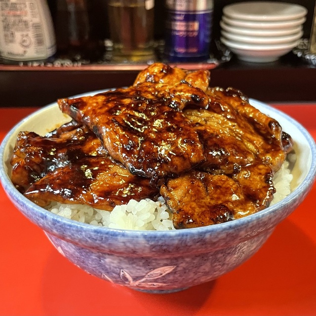 一番人気の看板メニュー。群馬県産の高級豚肩ロースを初代が考案した青森県産にんにくがたっぷり入った秘伝の超濃厚醤油だれにじっくりと漬け、揚げ焼きにしてその後たれをたっぷりと絡めてご飯の上にのせた一品。ご飯の量は、並でもたっぷり500gとボリューム満点です。