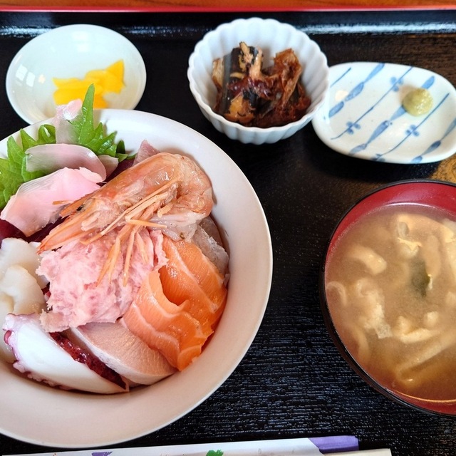 - 海鮮丼 1,300円 ※漬け物・小鉢・ごはん・みそ汁付き