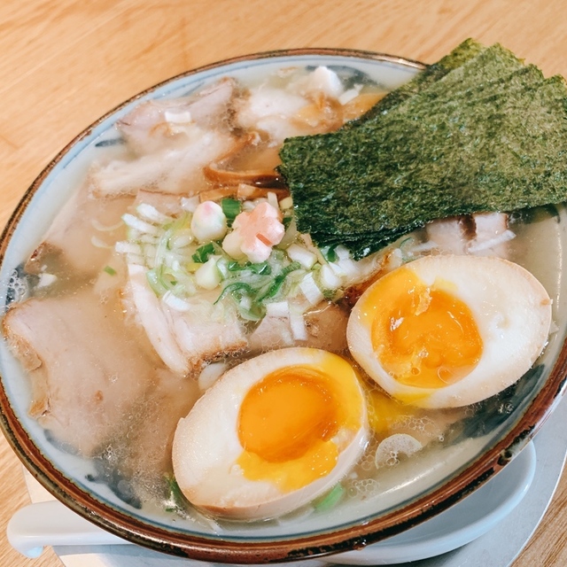 スープは、豚骨・瀬戸市の煮干し・香味野菜などからとったスープを塩のかえしと合わせており、あっさりとした味わいながらもパンチが効いています。麺は、ツルツルで喉ごしがよく、モチモチしています。レギュラーのチャーシューは、ウデ肉とバラ肉の2種類です。