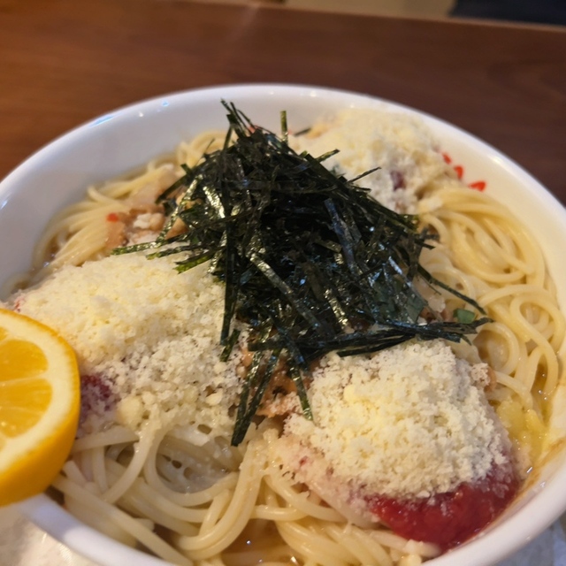 納豆のおいしさをひきたて和と洋が合わさった新感覚のパスタ。コンソメやアサリの出汁などを使った醤油ベースのスープに企業秘密だという隠し味がたっぷりと入っており、夏にぴったりの酸味が効いたスープパスタになっています。トッピングされている自家製の納豆「水納豆」は、北海道産の大豆を使用。粘りが強くやわらかいのでパスタとの相性も抜群。つくりたてをすぐに冷凍しているので雑味がなく嫌なにおいもしません。他にもチーズ・トマトのマリネ・大葉・ツナなどトッピングも盛りだくさんです。