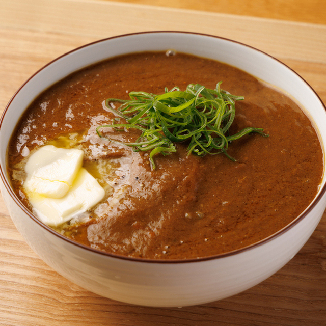 くさみが少なくやわらかい肉質が特徴の岩手県産の銘柄豚「岩中豚」のヒレ肉を使用。低温すぎない温度(145℃)で揚げることでサクサク感を残しつつやわらかくジューシーに仕上げたヒレカツ。お好みで自家製の青唐辛子味噌、藻塩、ソース、からしでいただきます。追加でカレールーを注文し、茶碗の上でカツカレーにして食べるのもおすすめです。