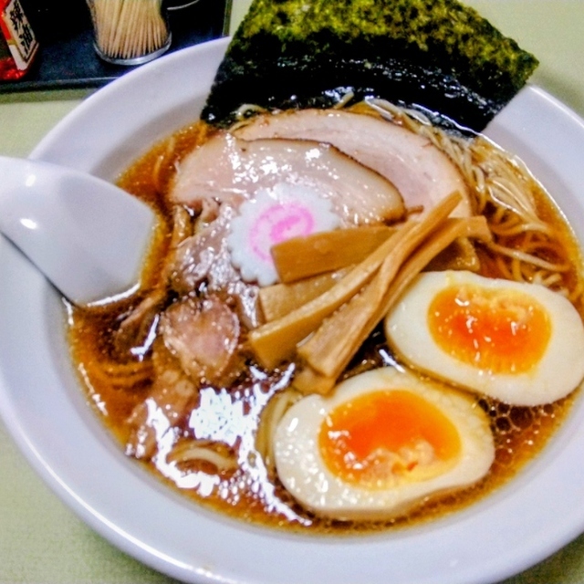 醤油ラーメンに餃子と半ライスがついた人気のセットメニュー。スープは南房総産のカツオ・ソウダガツオ・サバの3種類の節から出汁をとった海鮮の旨味が凝縮したコクのある特製スープ、麺はそのスープがよくからむ特注のストレート麺。マイルドでさっぱりとした味わいのスープは絶品とシニア層にも大好評、今までいろいろなラーメンを食べてきた日村さんの中でもベスト3にはいるおいしさだったそうです。
